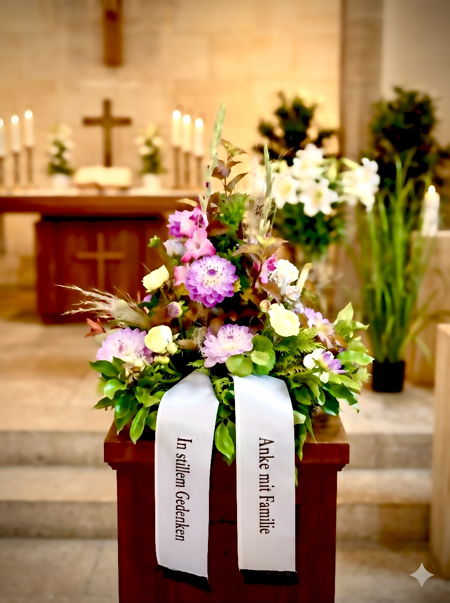 Geeignet für Trauerfeiern in der Kapelle, Aufbahrungsräume, Beisetzungen sowie als stilvolles Grabgesteck.