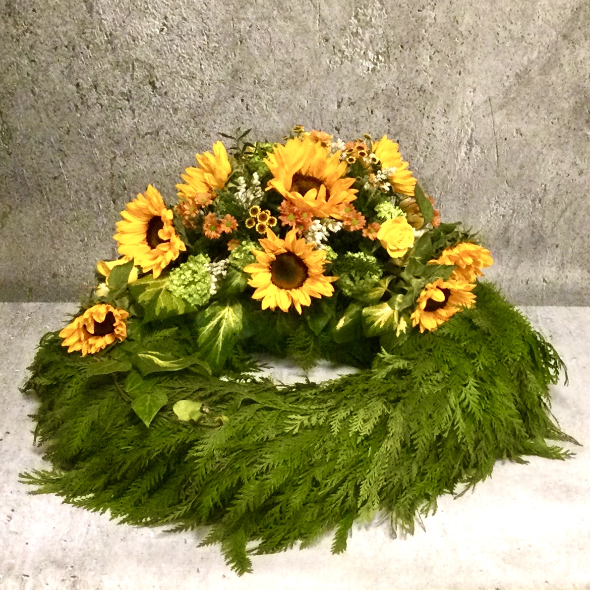 Trauerkranz mit zum Beispiel Sonnenblumen – ein lichtvoller Abschiedsgruß