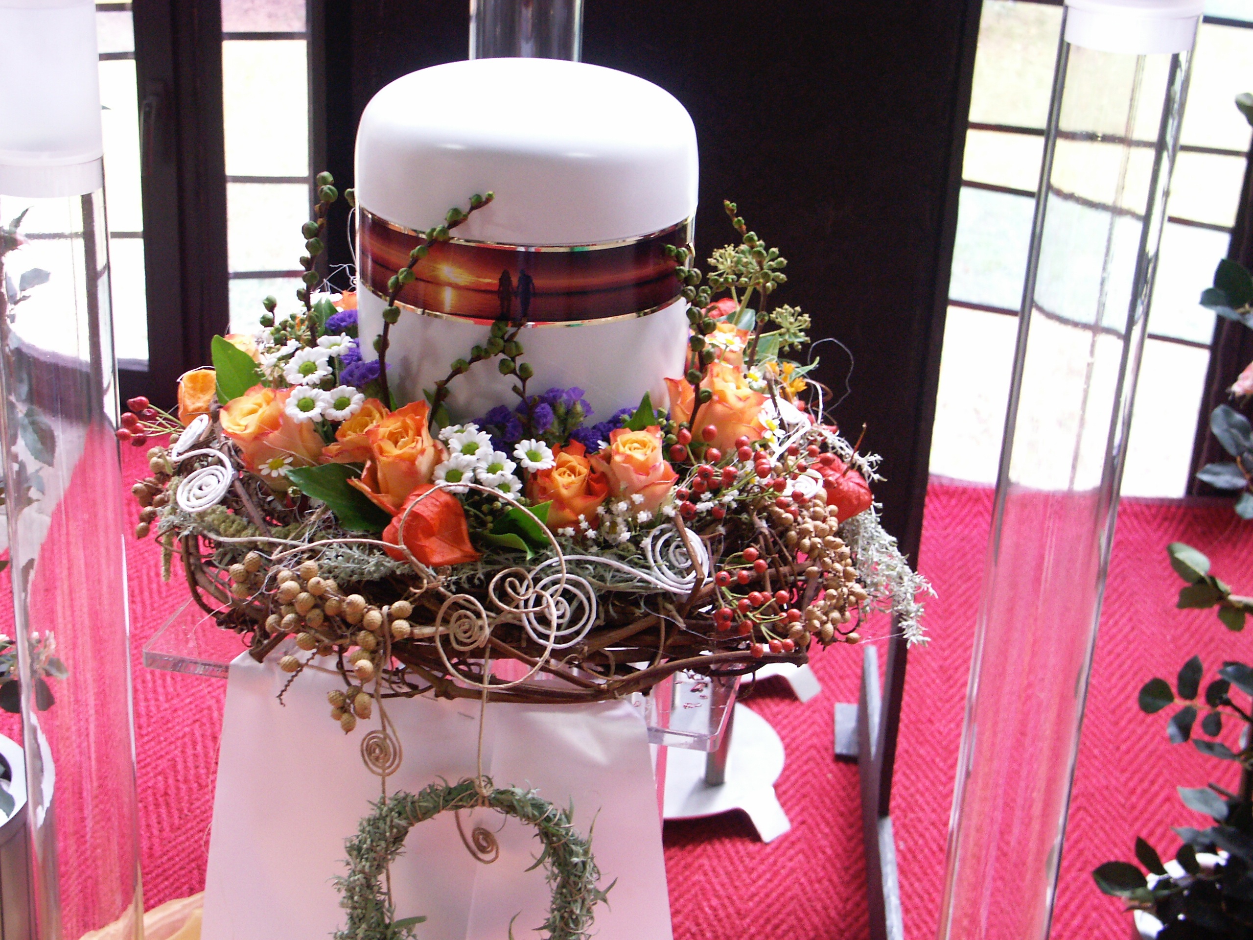 Urnenschmuck in Weiß und Orange – stilvoller Kranzschmuck für die Urne