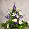 Die rein weiße Farbgestaltung wirkt klar, ruhig und zeitlos – eine klassische Wahl in der Trauerfloristik.